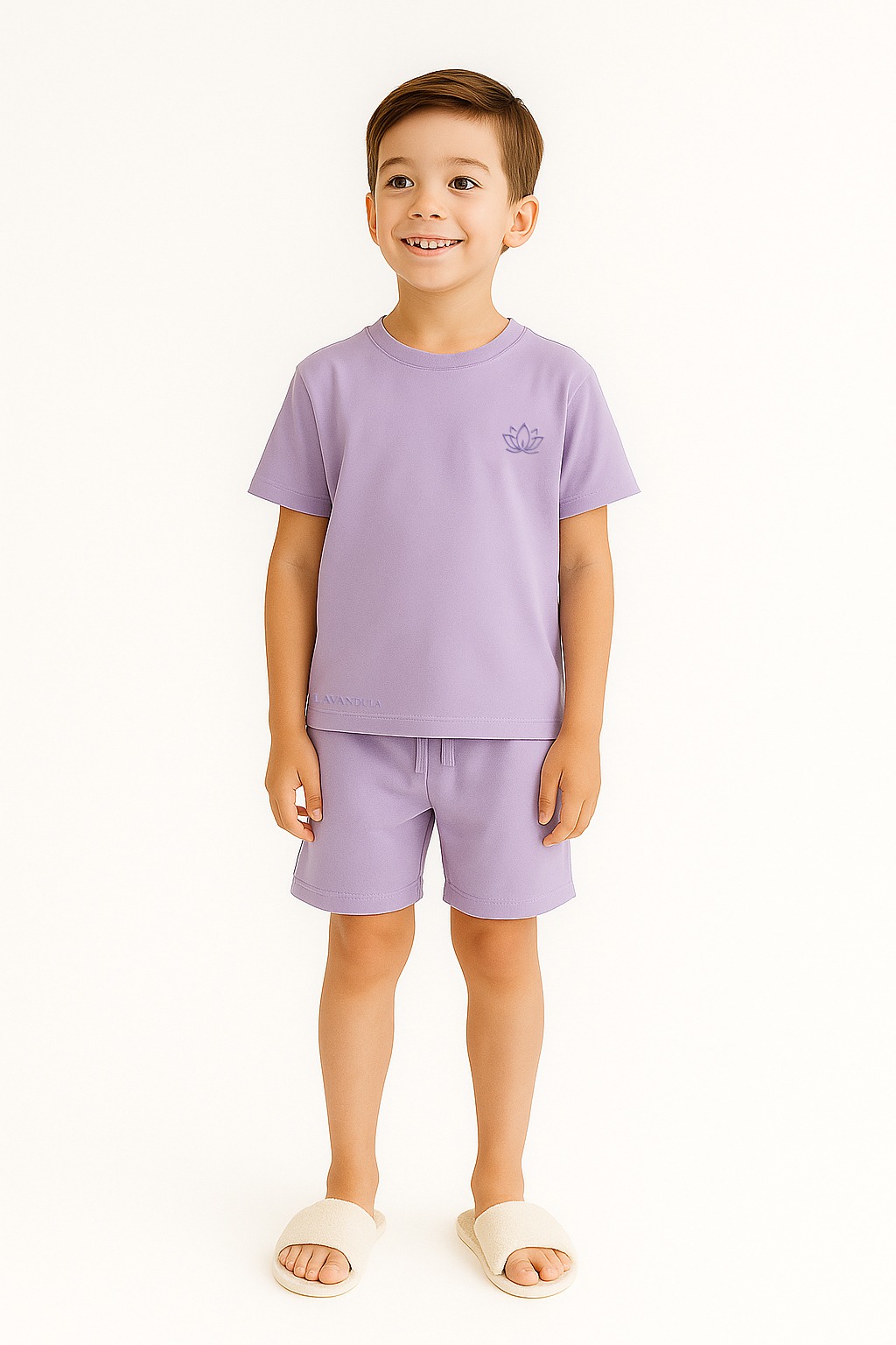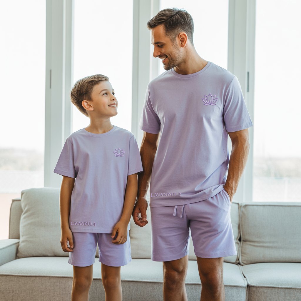 A comfortable summer set for boys in a calm, light purple color, perfect for daily wear or sleep.